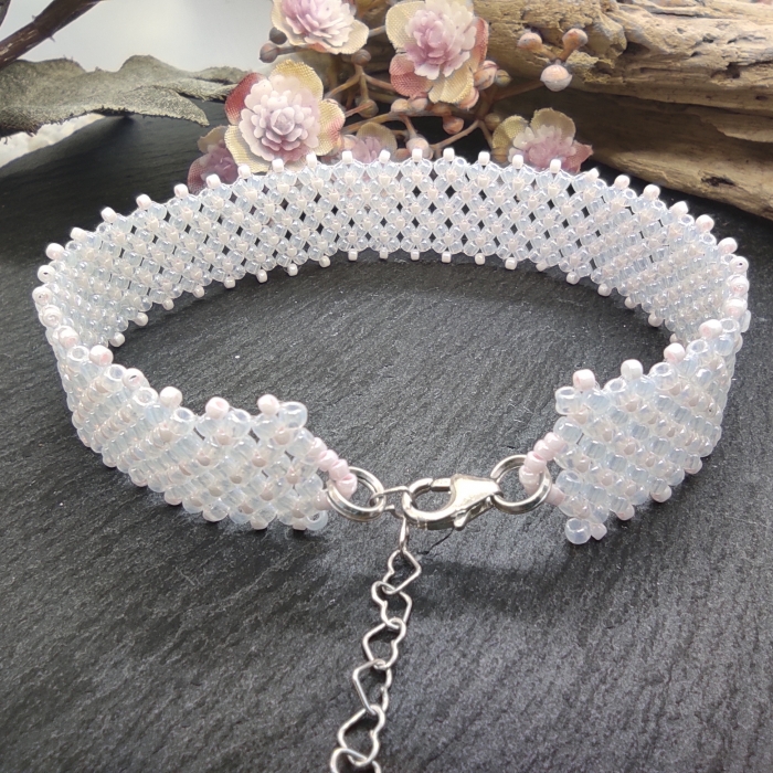 Náramek je zakončen karabinkou a prodlužovacím řetízkem z Ag