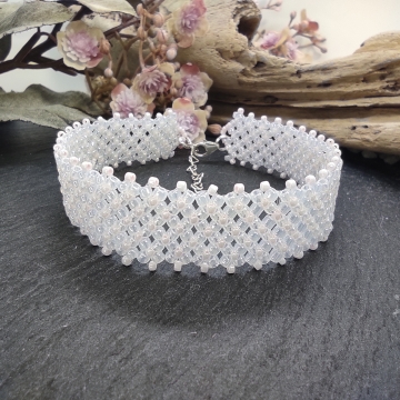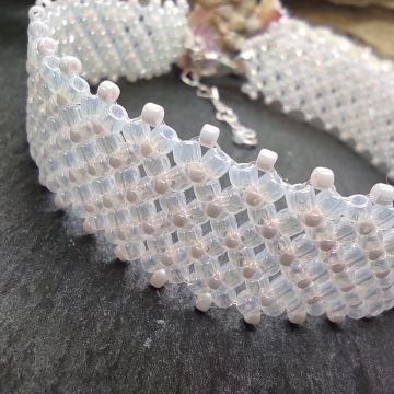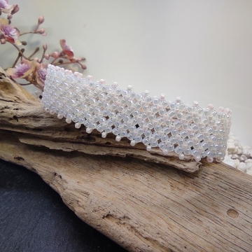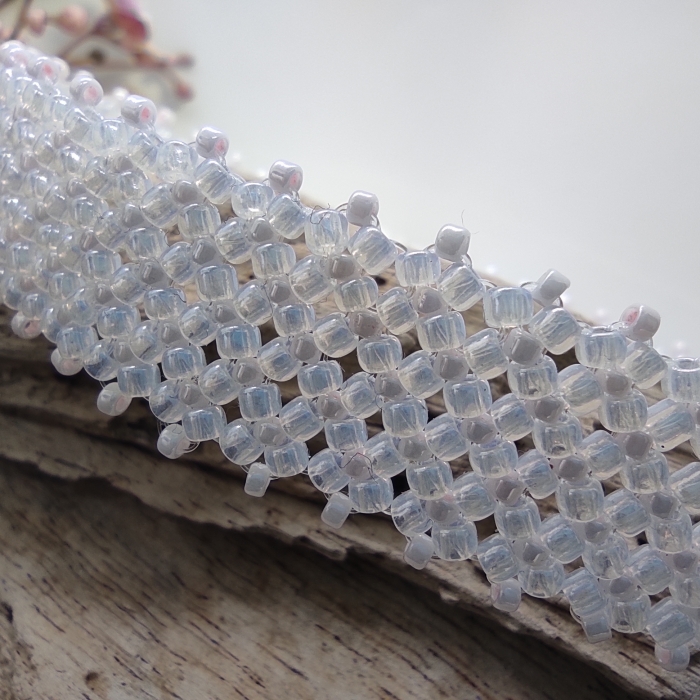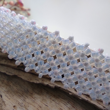 Jemný elegantní náramek je ručně ušit z japonských rokajlových korálků v kombinaci zlato-hnědého crystalu a zelené mátové