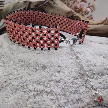 Náramek je zakončen karabinkou a prodlužovacím řetízkem z Ag