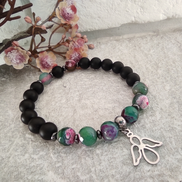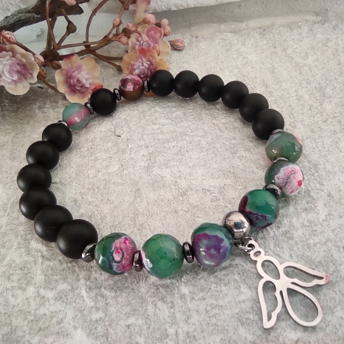 Materiál: achát, chirurgická ocel, elastické vlákno