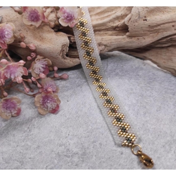 Jemný elegantní náramek je ručně ušit z japonských rokajlových korálků v kombinaci světle modré a čirého duhového crystalu