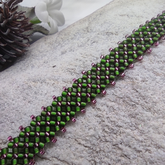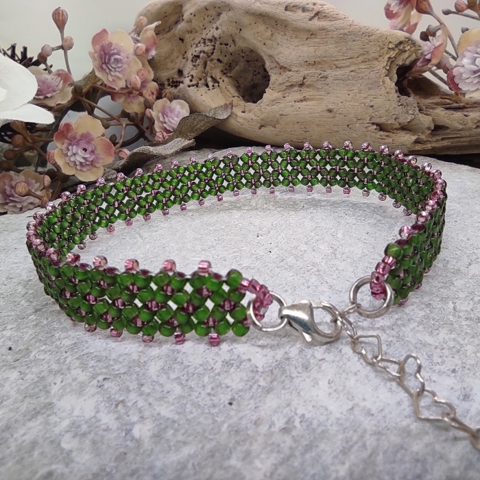 Jemný elegantní náramek je ručně ušit z japonských rokajlových korálků v kombinaci opálově růžové a matně bílého krystalu