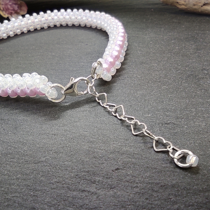 Náramek je zakončen karabinkou a prodlužovacím řetízkem z Ag