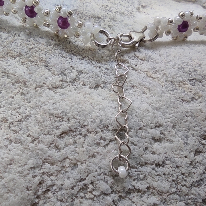 Náramek je zakončen karabinkou a prodlužovacím řetízkem z Ag