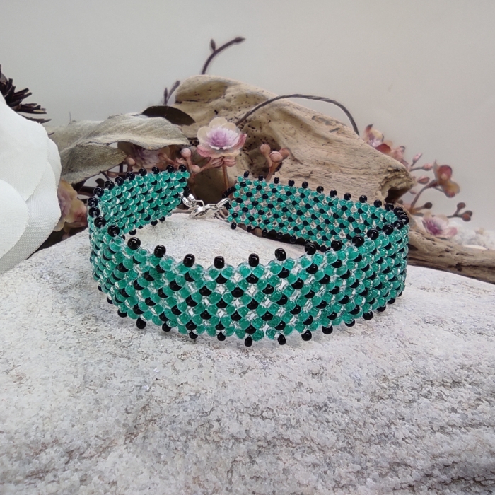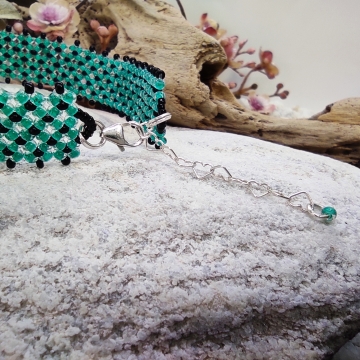 Náramek je zakončen karabinkou a prodlužovacím řetízkem z Ag