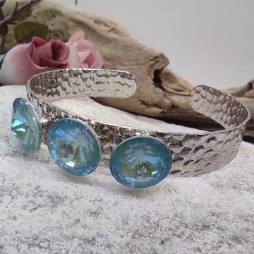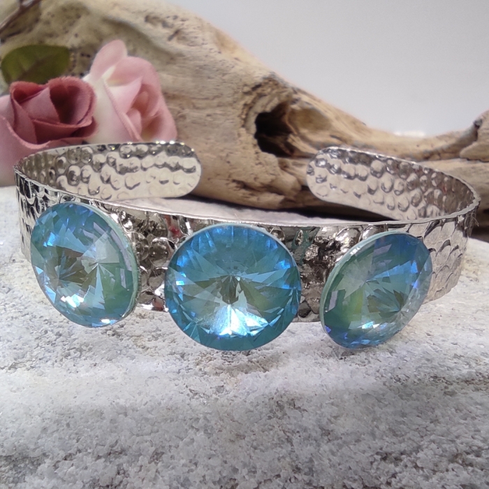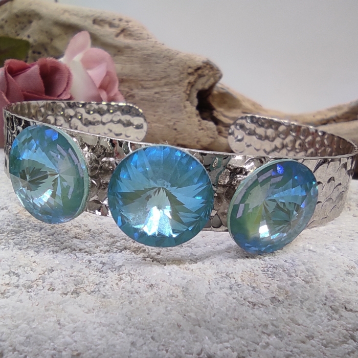 Černý kožený náramek je vyroben z pravé kůže a je osazen krásným růžovo-modro-fialovým Swarovski krystalem
