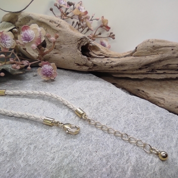 Náramek je ukončen karabinkou a prodlužovacím řetízkem