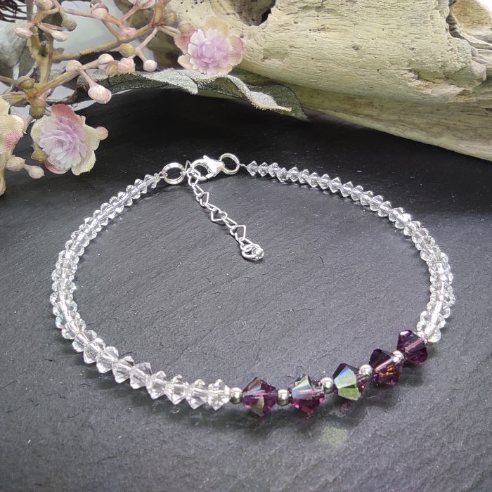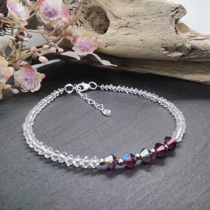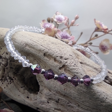 Jemný elegantní náramek je vyroben z českých rokajlových korálků v kombinaci s modro-fialovými Swarovski krystaly