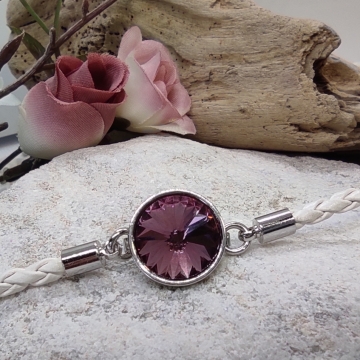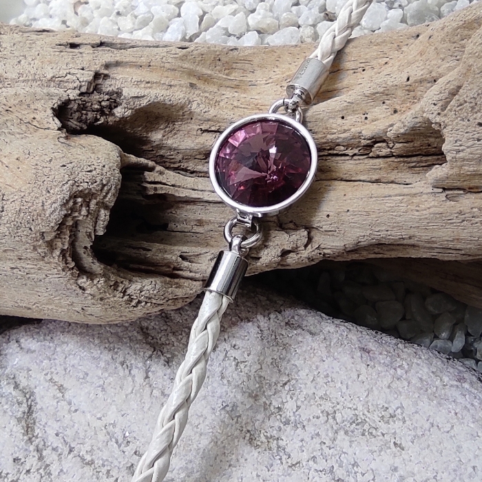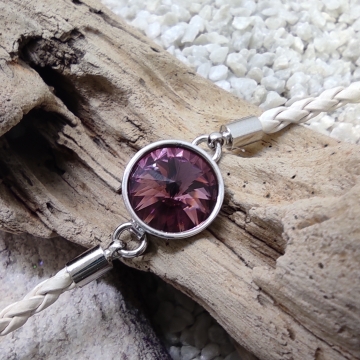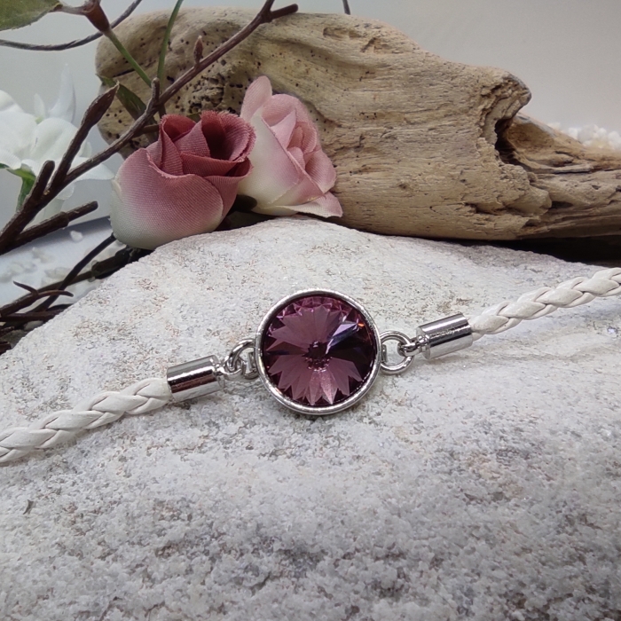 Tepaný náramek z bižuterního kovu stříbrné barvy, osazený třemi krásnými Swarovski krystaly opálové barvy o průměru 12 mm.