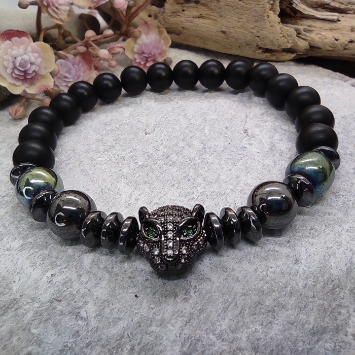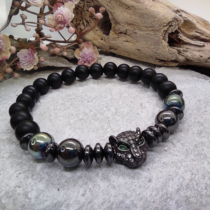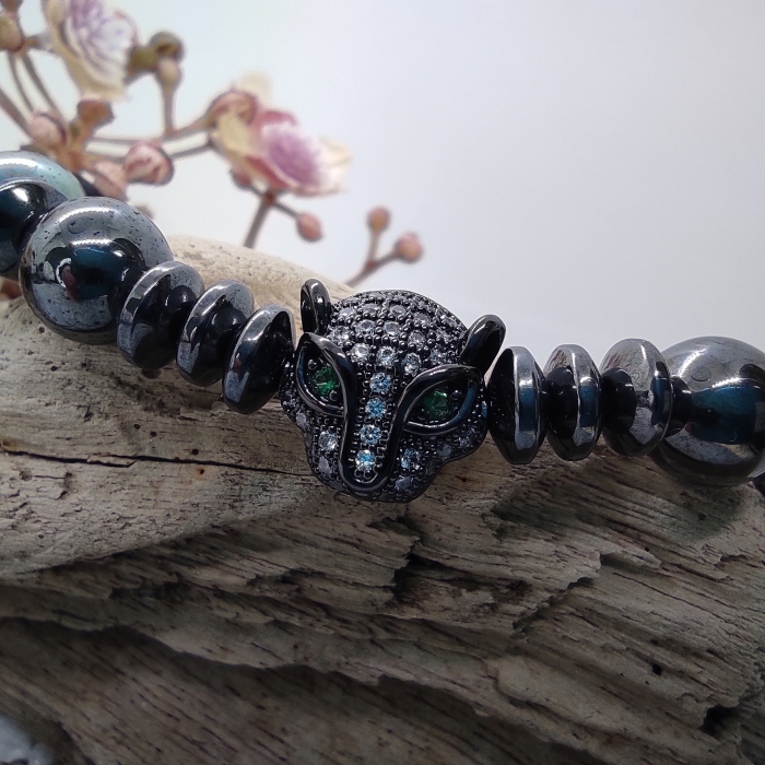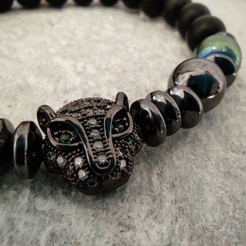 Materiál: láva přírodní, hematit syntetický, chryzokol tyrkysový syntetický, chirurgická ocel 316, elastické vlákno